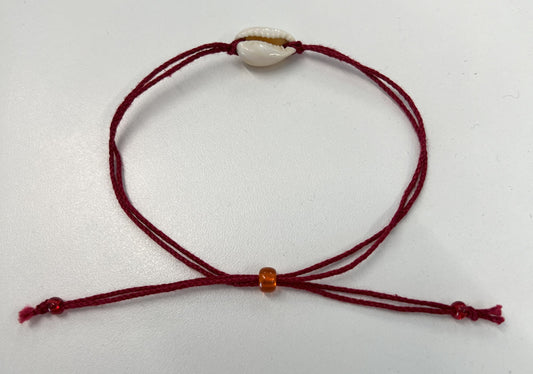 Red Egyptian Cotton and Ringtop Cowrie Intention Bracelet
